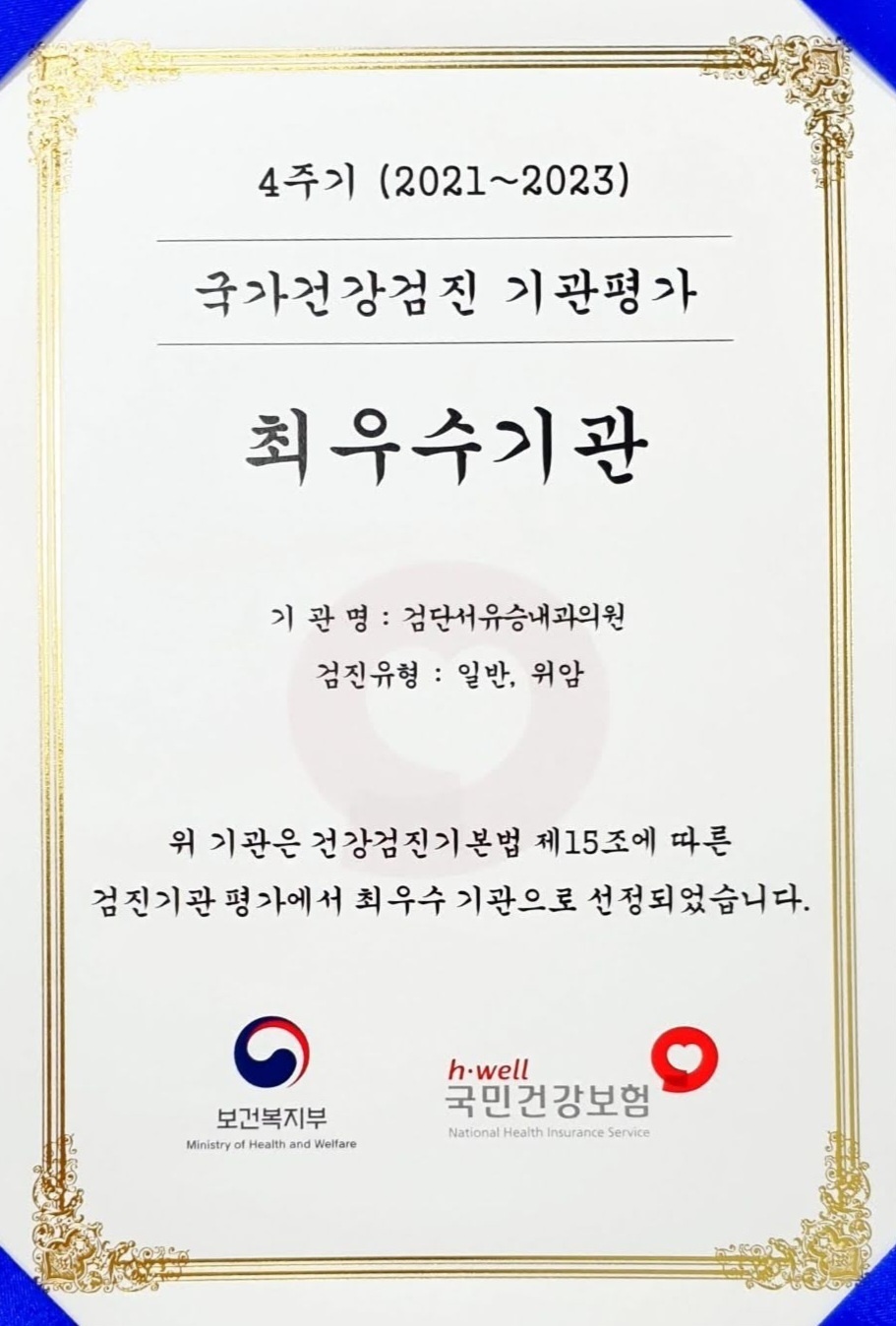 검단 서유승 내과는 3대 암검진과 국민건강검진,